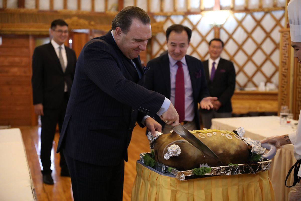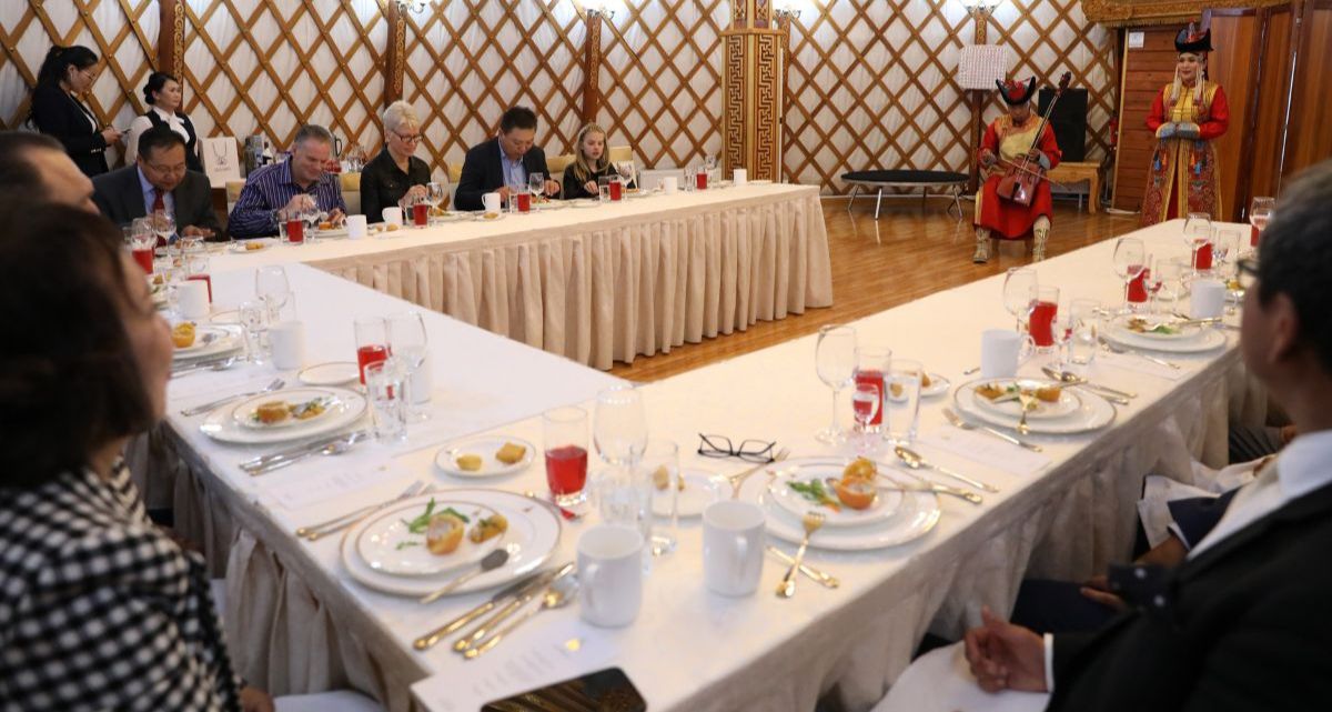 On Wednesday, we traveled to country number 79 for me—Mongolia. We had an amazing night as we were welcomed like royalty to the nation by the Minister of Foreign Affairs, Damdin Tsogtbaatar, with an official banquet and cultural night in our honor. Adonica and I were so blessed along with Eric, Jennifer, Elliott and Emily Gonyon. It was a night of Mongolian culture, cuisine, music, and singing. Other guests included top businessmen from the nation and the US Ambassador to Mongolia, Michael Klecheski. The night ended with the Minister presenting me with a gift and officially welcoming us and the team to the nation. We felt extremely humbled, as many over the centuries have come to this great land including Marco Polo, and for us to be welcomed in such a manner is truly overwhelming.